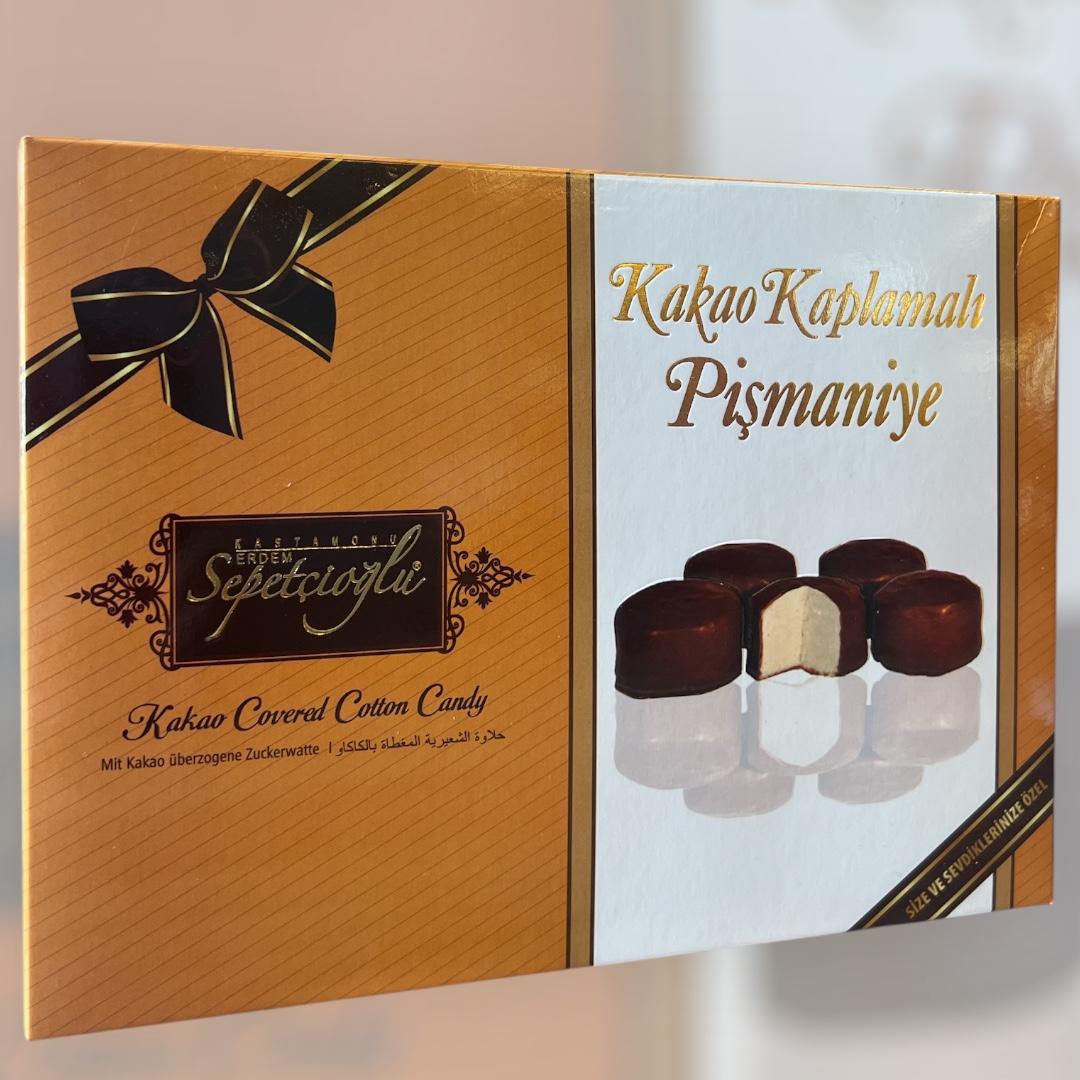 Kakao Kaplamalı Pişmaniye, geleneksel Türk tatlılarının en özel ve lezzetli örneklerinden biridir. Bu eşsiz tatlı, ince ince çekilmiş un, şeker ve doğal malzemelerle hazırlanarak, üzerine lezzetli kakao kaplaması ile taçlandırılmıştır. Her lokmada sunduğu enfes tat deneyimi ile hem gözlere hem de damaklara hitap eder.