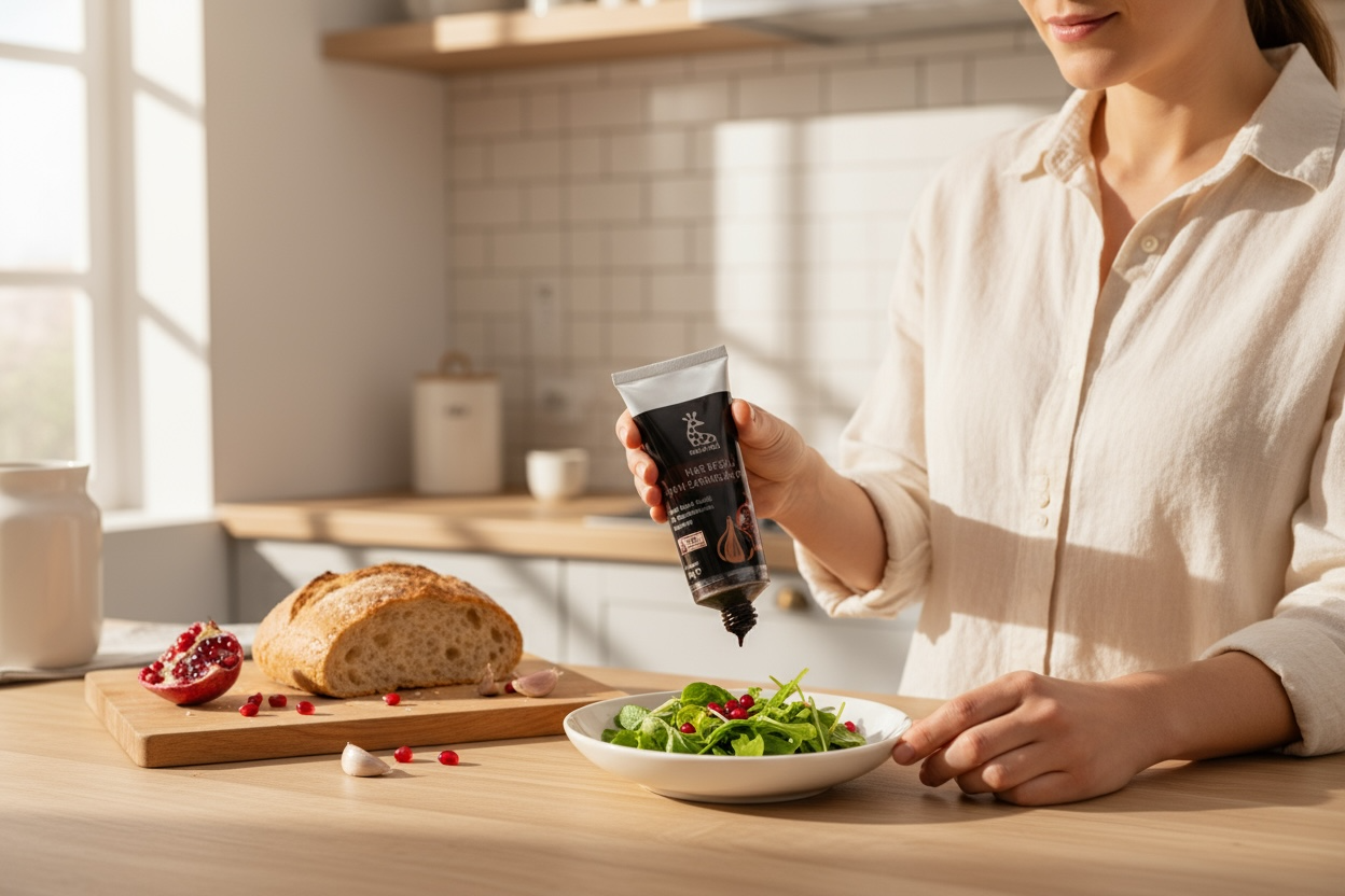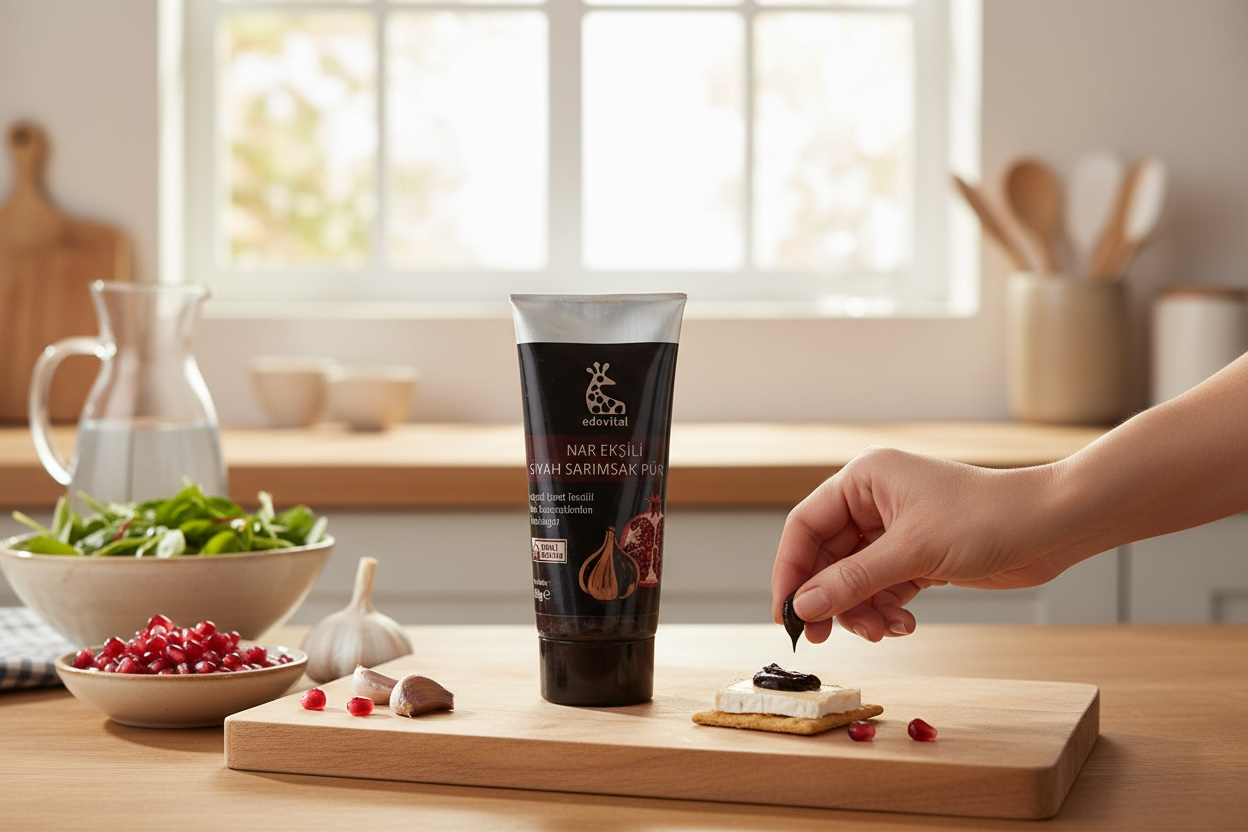 Nar Ekşili Siyah Sarımsak Püresi, sağlıklı beslenmeyi sevenlerin mutlaka denemesi gereken bir üründür. Lezzetiyle yemeklerinizi zenginleştirirken, sağlığınıza da katkıda bulunur. Doğallığı ve kalitesi ile mutfaklarınızda yer almaya aday bu ürünü deneyerek, farklı tarifler ve lezzetler yaratabilirsiniz.