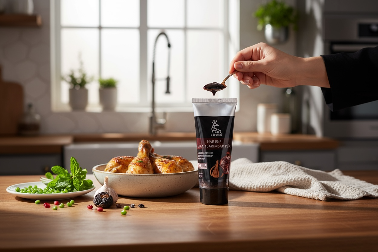 Siyah sarımsak; kalp sağlığını koruma, kolesterolü düşürme ve bağışıklık sistemini güçlendirme gibi çeşitli sağlık yararları sunmaktadır. Nar ekşisi ise vücuttaki iltihapları azaltmaya yardımcı olur ve sindirim sistemine olumlu etki eder. Birlikte kullanıldığında, bu iki güçlü malzeme, sağlığınıza katkı sağlarken, yemeklerinizi de zenginleştirir.