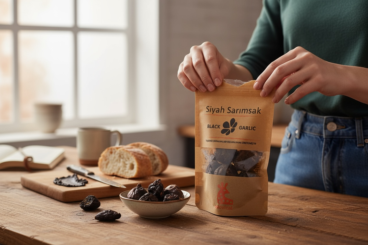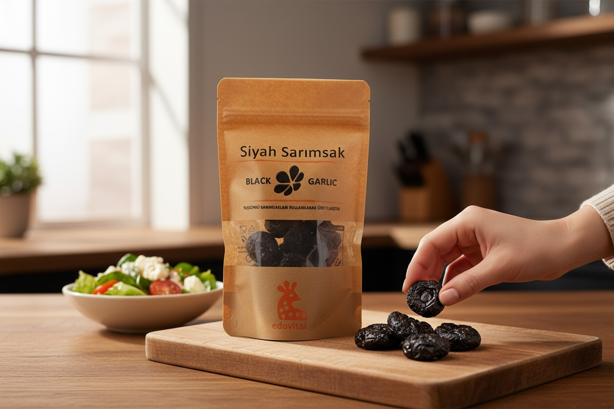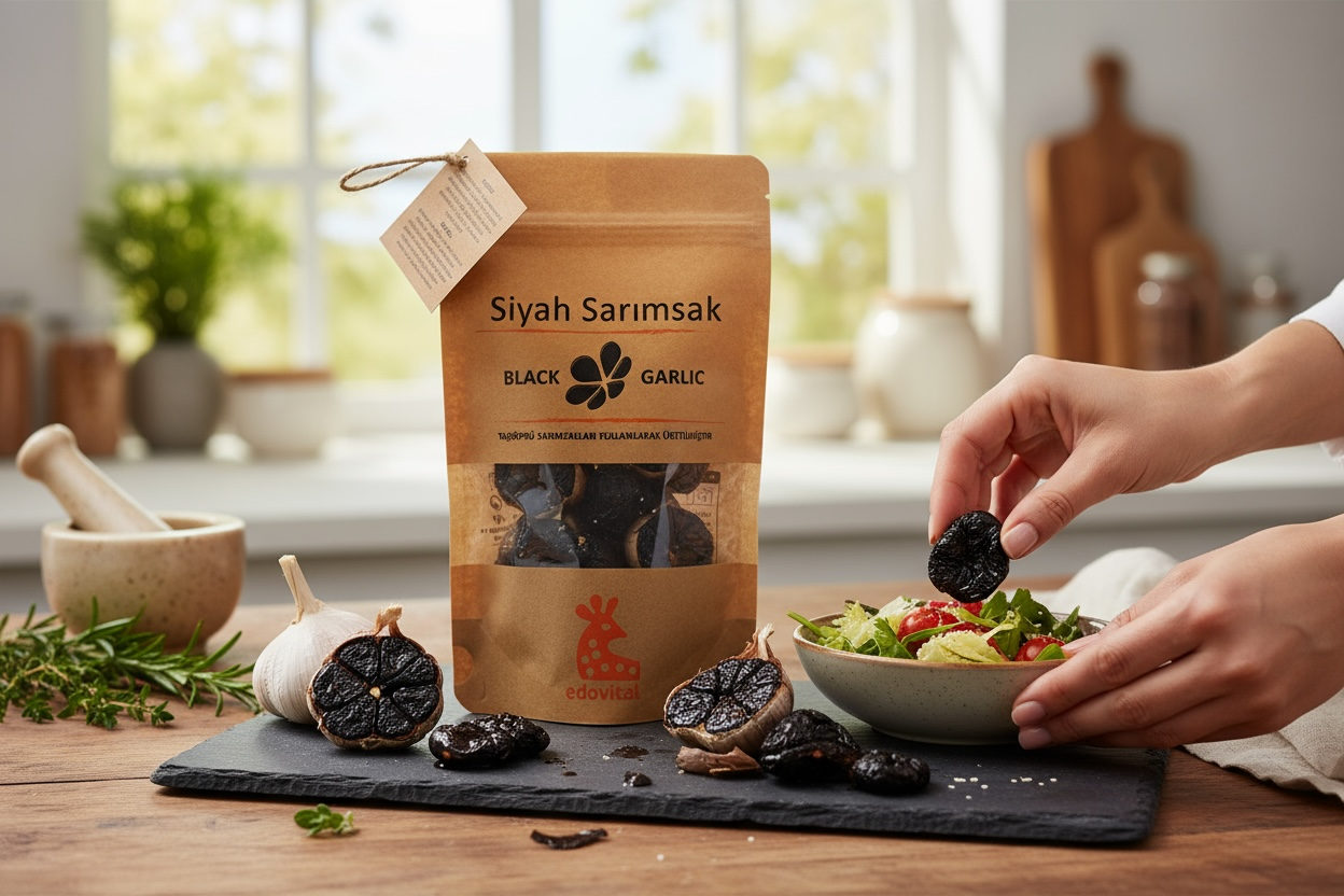 Siyah sarımsak, son yıllarda mutfaklarda ve sağlıklı beslenme trendlerinde kendine güçlü bir yer edinmiştir. Geleneksel sarımsağın, belirli bir süre boyunca fermantasyona tabi tutulmasıyla elde edilen bu özel ürün, lezzeti ve sağlığa faydalarıyla dikkat çekmektedir. Bu ürünümüz, özenle seçilmiş naturel sarımsakların, geleneksel Türk yöntemleri ile işlenerek elde edilmiştir.
