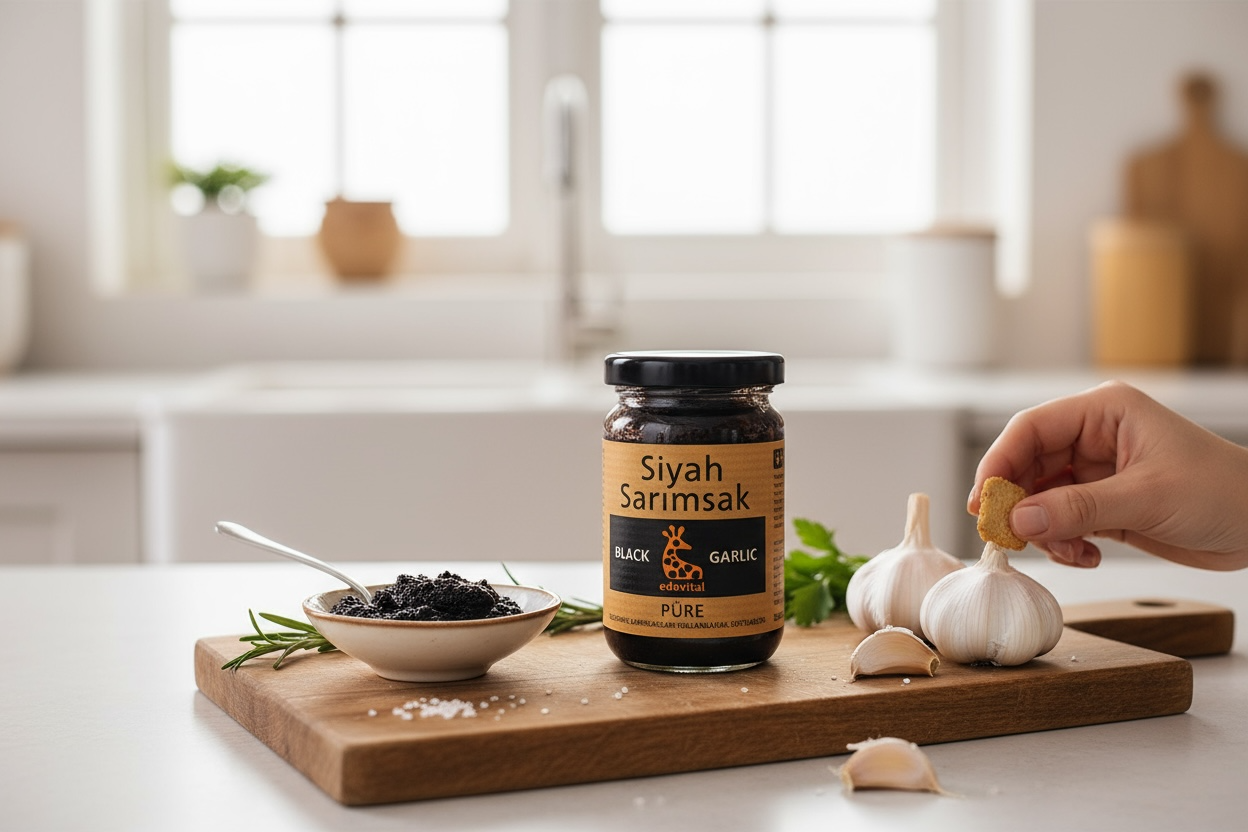 Siyah sarımsak püresi, doğal ve sağlıklı beslenmeyi önemseyenlerin mutfaklarına eklemek isteyecekleri vazgeçilmez bir lezzet kaynağıdır. Fermente edilme süreciyle zenginleşmiş olan siyah sarımsak, sağlığımıza faydalı olan bileşenleriyle doludur. Özellikle antioksidan özellikleri ve zengin besin içeriği sayesinde bu ürün, yemeklerinize hem tat katacak hem de sağlık açısından fayda sağlayacaktır.