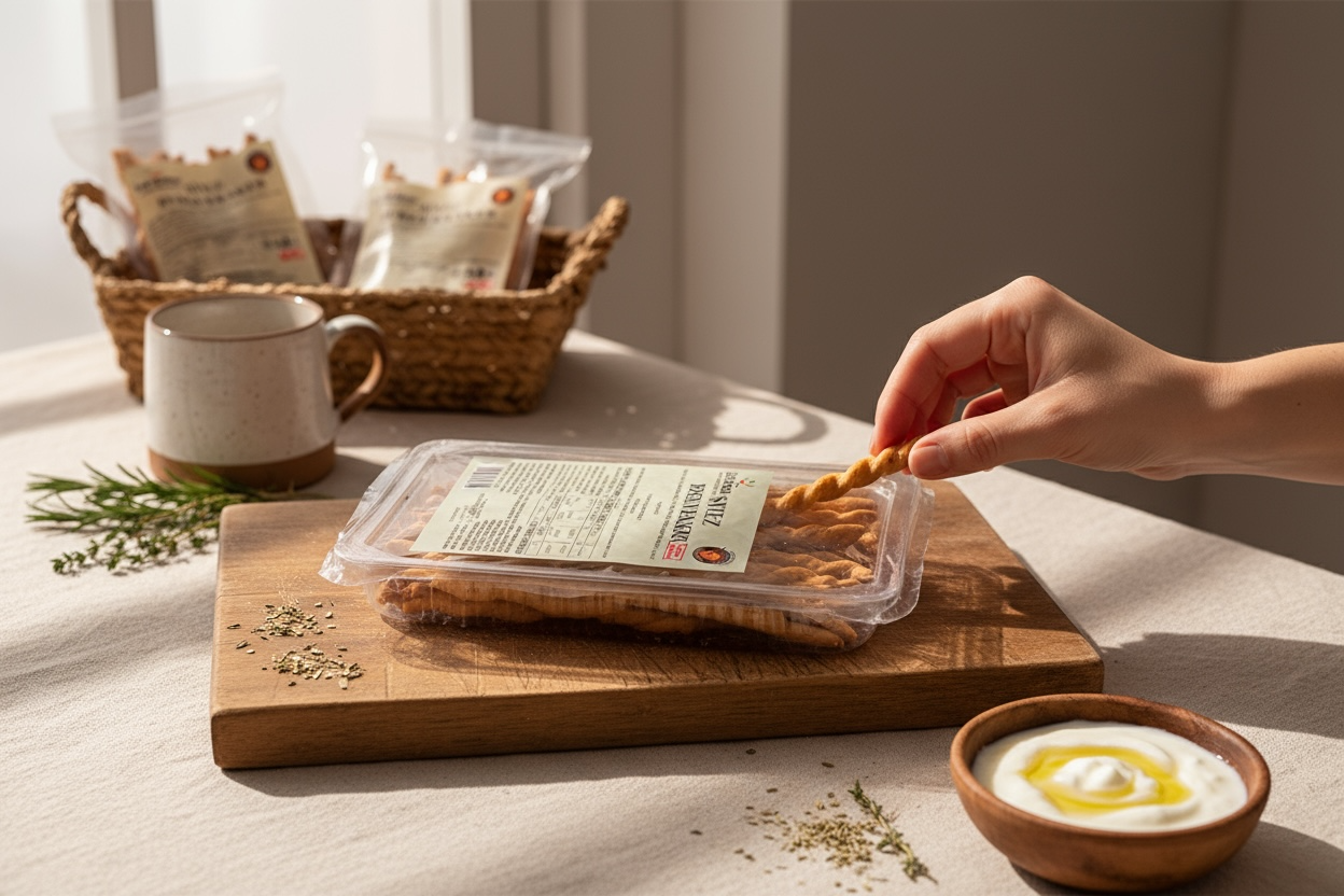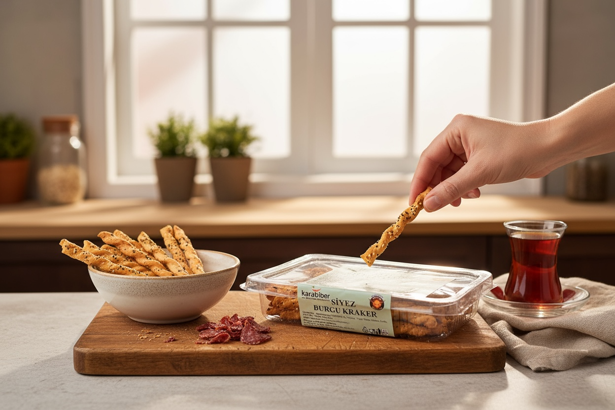 Siyez Burgu Kraker, hafif çıtır dokusuyla her ısırıkta eşsiz bir lezzet sunar. İçerisindeki zeytinyağının verdiği tat ile birlikte, siyez buğdayının doğal aroması, damağınızda unutulmaz bir iz bırakır. Atıştırmalık olarak, çay saatlerinde, misafirlerinize ikram ederken veya ara öğünlerde keyifle tüketebilirsiniz.